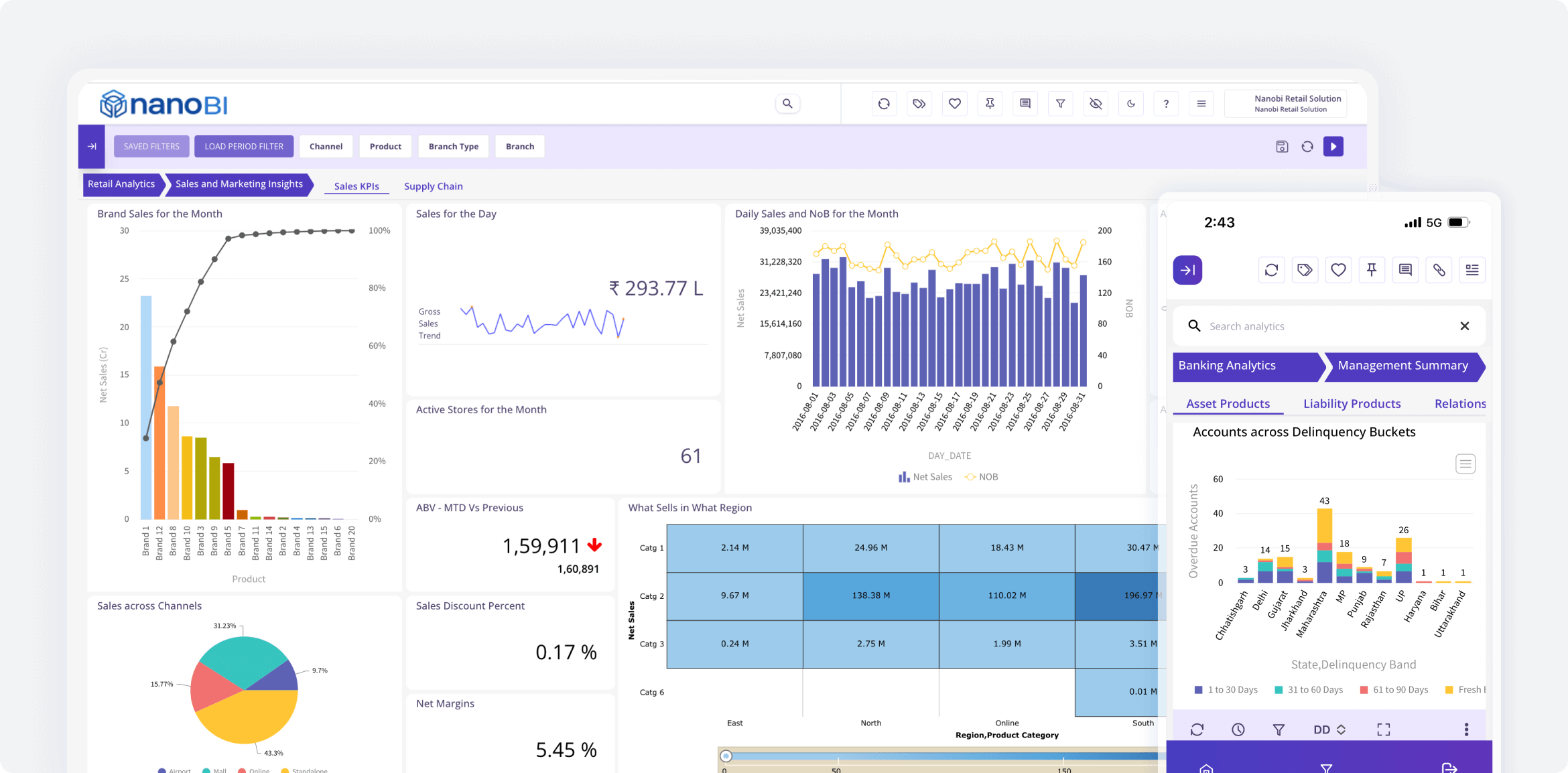 nanoBI's BFSI Analytics Solution is a ready-to-deploy analytics platform designed to help banks, NBFCs, and financial institutions manage risk, forecast sales, reduce delinquencies, and optimize operations using real-time insights and predictive analytics.